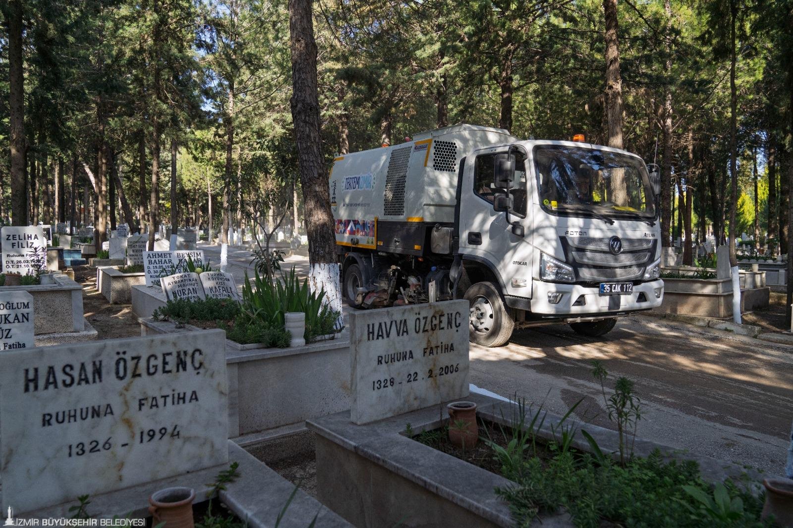 İzmir Büyükşehir Belediyesi, 23 milyon metrekare mezarlık alanında hizmet veriyor. Son 1,5 yıl içerisinde kent genelinde toplam 236 bin metrekarelik yeni alan defin hizmetine açıldı. Bu alanlar arasında Gaziemir, Kemalpaşa, Menderes, Menemen, Bornova, Karşıyaka ve Çiğli ilçelerinde çeşitli büyüklüklerde mezarlık alanları bulunuyor. Kısa vadede toplam 251 bin metrekarelik yeni mezarlık alanının defin hizmetine kazandırılması planlanıyor. Bu kapsamda Bornova, Buca, Güzelbahçe ve Seferihisar ilçelerinde çalışmalar hızla devam ediyor. Devir ve tahsis işlemleri tamamlanan alanlar da belirlendi. Buca, Bornova, Bergama, Kemalpaşa, Kınık, Torbalı, Seferihisar, Urla ve Menemen ilçelerinde toplam 369 bin metrekarelik alanın belediye adına devir ve tahsis işlemleri tamamlandı ve alanlara yönelik projelendirme çalışmaları başlatıldı. İzmir Büyükşehir Belediyesi’nin orta vadeli programı da netleşti. 2,5 milyon metrekarelik alanın mezarlık olarak kazandırılmasına yönelik imar planı, devir/tahsis, projelendirme ve yapım süreci devam ediyor.