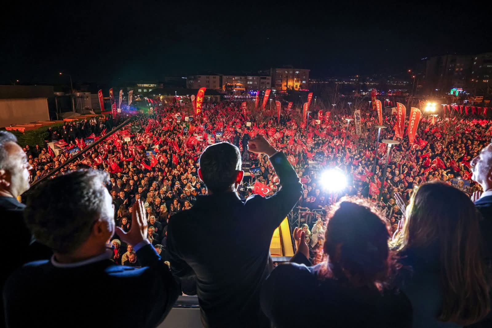 “Bütün Türkiye duysun ki ne diye gözaltına aldılar, hangi bahane ile tutuklayıp içeri koyacaklar. Tuğrul Kutluay diye bir firari, Suat Sırrı diye bir sanık, Deniz Bozkurt diye bir iftiracı. Bunlar bir şirket kurmuşlar, Bursa’da olabilecek en büyük haksızlığı yapıp, aynı daireleri, olmayan daireleri Bursalılara senet – sepetle satmışlar. Bursa’da 500 kişiyi dolandırmışlar. Şimdi birisi ellerinde, birisi firarda, birisini iftiracı yapmışlar. Paçayı kurtarmak için Bozbey’i yakacaklar. Bu adamların evinin önünde bugün 500 tane Bursalı protesto yaptı. Yani bir tarafta suçsuz, sizin seçtiğinize atılan iftiralar, bir tarafta kendileri bizzat dolandırıcı olan bu üç kişi. Diğer taraftan firarda olan, ‘Türkiye’ye getirildi, Edirne’de cezaevinde’ deniyor. Resmi açıklama yok. Emin Adanur denen bir iftiracının ifadeleriyle bu konular yıllarca gündemde, soruşturulmuş, hiçbir şey çıkmamış. Şimdi Deniz Bozkurt’u iftiracı yaparak, buradan sorgulama yapıyorlar. Başkanı, eşini, kızını, kardeşini alıp aileye de saldırarak, Bursa’nın iradesine çökmeye çalışıyorlar. ‘Aileye dokunanın elleri kırılır, yuvası yıkılır’ demiş büyüklerimiz. Bu gözü dönmüşlere diyorum ki ‘İstanbul’daki ailelerden sonra Bursa’daki aileye dokunanın da ellerini bu millet kırar, yuvasını değilse de iktidarını bu millet yıkar.’ İki gündür memleketim Manisa’da 70 açılış yaptım. 24 temel attım Manisa’da ve İzmir’de, bugünkülerle birlikte 95’e ulaştı ve Cumhuriyet Halk Partisi bütün bu saldırılara karşı çalışıyor, direniyor, didiniyor ve başarıyor. Buradan, bu meydandan sesleniyorum. Biz hesap vermekten kaçan insanlar değiliz. Bozbey’in avukatları bütün iddiaları çürüttüler, bütün iftiracıların attığı iftiraları ortaya çıkardılar. Mahkeme görülecek, millet görecek. Bir eksiklik varsa o zaman hesap vermekten kaçmayız. Ama bu şartlar altında, kendisi 500 Bursalıyı dolandıranın ifadesiyle yapılacak tutuklama; haksızlıktır, siyasi yankesiciliktir, kapkaççılıktır. Bursa’nın vermediği yetkiyi hileyle almaktır. Erdoğan’a sesleniyorum. Bu gece bir kere daha düşün. Yaptığın seçim iptalinde İstanbul seçiminde 13 bin fark vardı, 1,5 ay sonra millet 806 bine çıkardı. Sandığı çalmaya çalışıyorsun diye. Yine aynı şey olacak. Bir yıldır yapmadığınız kalmadı, ama Ekrem Başkan’a yapılanın kumpas olduğuna inanan yüzde 62, doğru olduğuna inanan yüzde 25, ‘Kararsızım’ diyen, konuşmayan yüzde 15. Milletin yüzde 62’sini bir yıldır inandıramadın.”