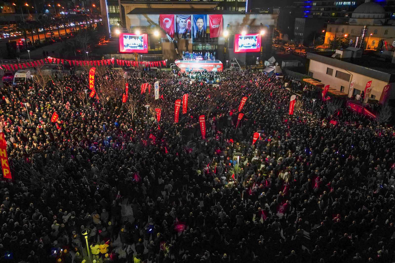 “Şimdi Bursa’da bunu yaparsan Bursa’nın gönlünü kıracaksın ve Bursalı bunun hesabını çok ağır şekilde ödetecek. Denemesi bedava. Ama buradan Erdoğan’a çağrım şudur ki; bu hakimlere, savcılara verdiğin talimattan vazgeç, hak etmediğin bir şeye çökmekten vazgeç, tutuksuz yargılama olsun. Mustafa Bozbey, yargı önünde yargılansın, televizyondan yayınlansın, kararı millet versin, Bursa versin. Hodri meydan. Eğer bunu dinlemezse Erdoğan, sizin iradenize halel getirirse, Bursa Büyükşehir’e çökmeye kalkarsa, bunun hesabını soracak mısınız? Bir dahaki seçimde bu darbenin bedelini AK Parti’ye en ağır şekilde ödetecek miyiz? Tercih senin Erdoğan. İşte milletin sesi, işte vicdanın sesi. İşte senin kulağına fısıldayan o şeytanın sesi. Şeytana uyarsan milleti karşına alırsın. Genç arkadaşlar sesleniyor, buradan şunu söylüyorum. Bugün buraya gelmek tarihi bir iştir. Buraya gelmek, mitinge gelmek, otobüsün üzerine çıkmak, elde mikrofonla konuşmak önemli değil. Bu bir partinin Genel Başkanı’nın görevidir, yapacak. Milletvekilinin görevidir, yapacak. İl başkanının görevidir, yapacak. Ama esas ne biliyor musun? Bugün bu şartlarda kalkıp da evinden buraya geliyorsun ya. Verdiğin oyun arkasında duruyorsun ya. Siyasi bir kapkaça ‘dur’ diyorsun ya. Siyasi yankesiciye haddini bildiriyorsun ya. Sen var ya sen, işte sen taşıyorsun Cumhuriyet’i sırtında. Sensin hepimizin ümidi. Herkes de şunu bilsin ki bu akşam Bursa’dan öğrenecek çok şey vardır. Bu meydana bakıp da şunu herkes görecek. Millettir efendi olan. Esas olan millettir. Millet ne diyorsa o olur, o olacak. Bu yolda hep beraber yürümeye devam edecek miyiz? Bozbey’e sahip çıkacak mısınız? İradenize sahip çıkacak mısınız? Günü gelince hesap soracak mısınız? Bu yolda birlikte yürüyelim mi? Haydi o zaman yolun açık olsun. Yolu sen açtın. Umudun meşalesini sen yaktın. Aslansın Bursa, aslansın. Yürüyelim arkadaşlar.”
