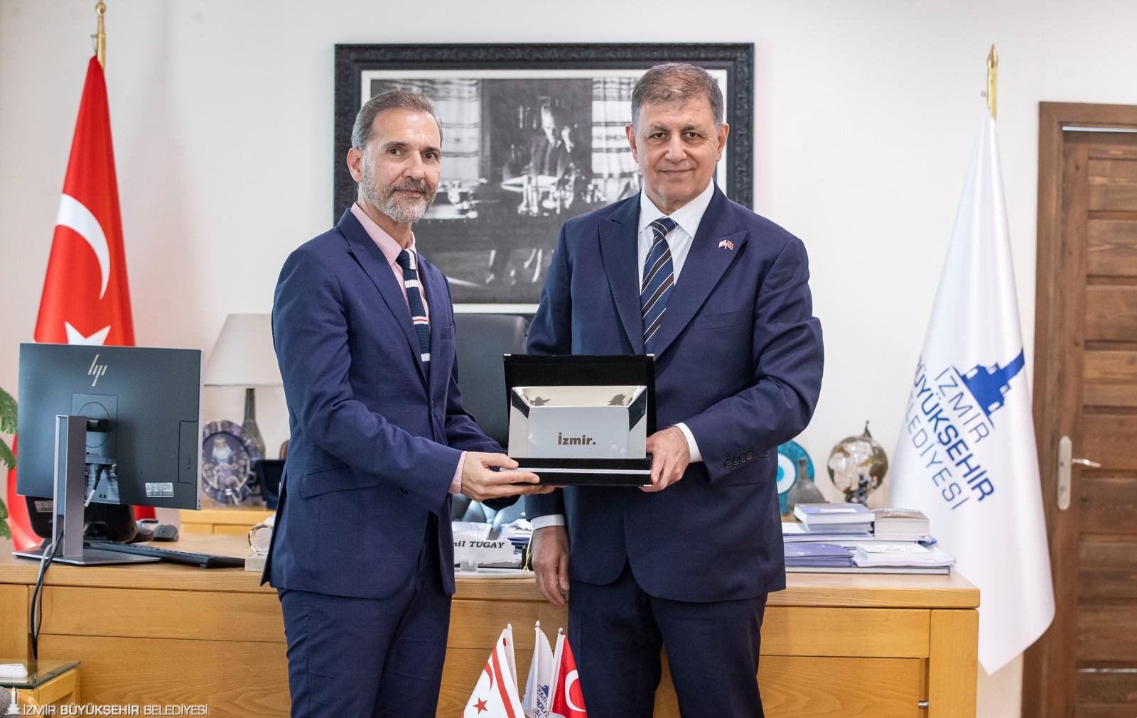 İzmir Büyükşehir Belediye Başkanı Dr. Cemil Tugay, Kuzey Kıbrıs Türk Cumhuriyeti Başkonsolosu Mustafa Davulcu’yu ağırladı.
