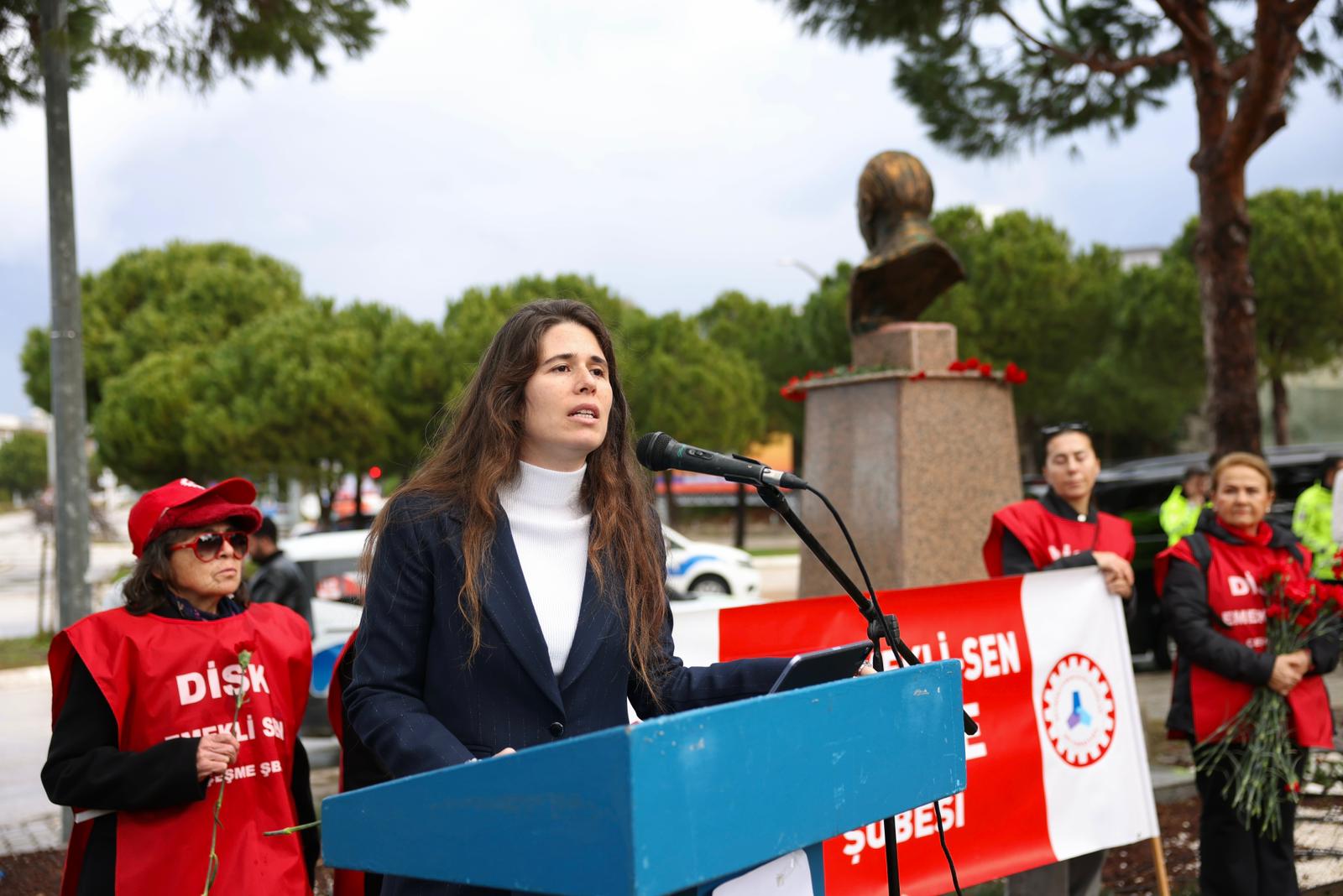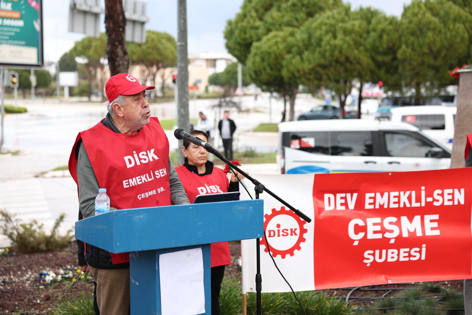DİSK Dev Emekli-Sen Çeşme Şube Başkanı İbrahim Tuz ise yaptığı konuşmada, Uğur Mumcu’nun emperyalizme, gericiliğe ve sömürü düzenine karşı yürüttüğü mücadelenin bugün de güncelliğini koruduğunu söyledi. Tuz, Mumcu’yu anmanın aynı zamanda laik, demokratik ve tam bağımsız Türkiye idealine sahip çıkmak anlamına geldiğini vurguladı.